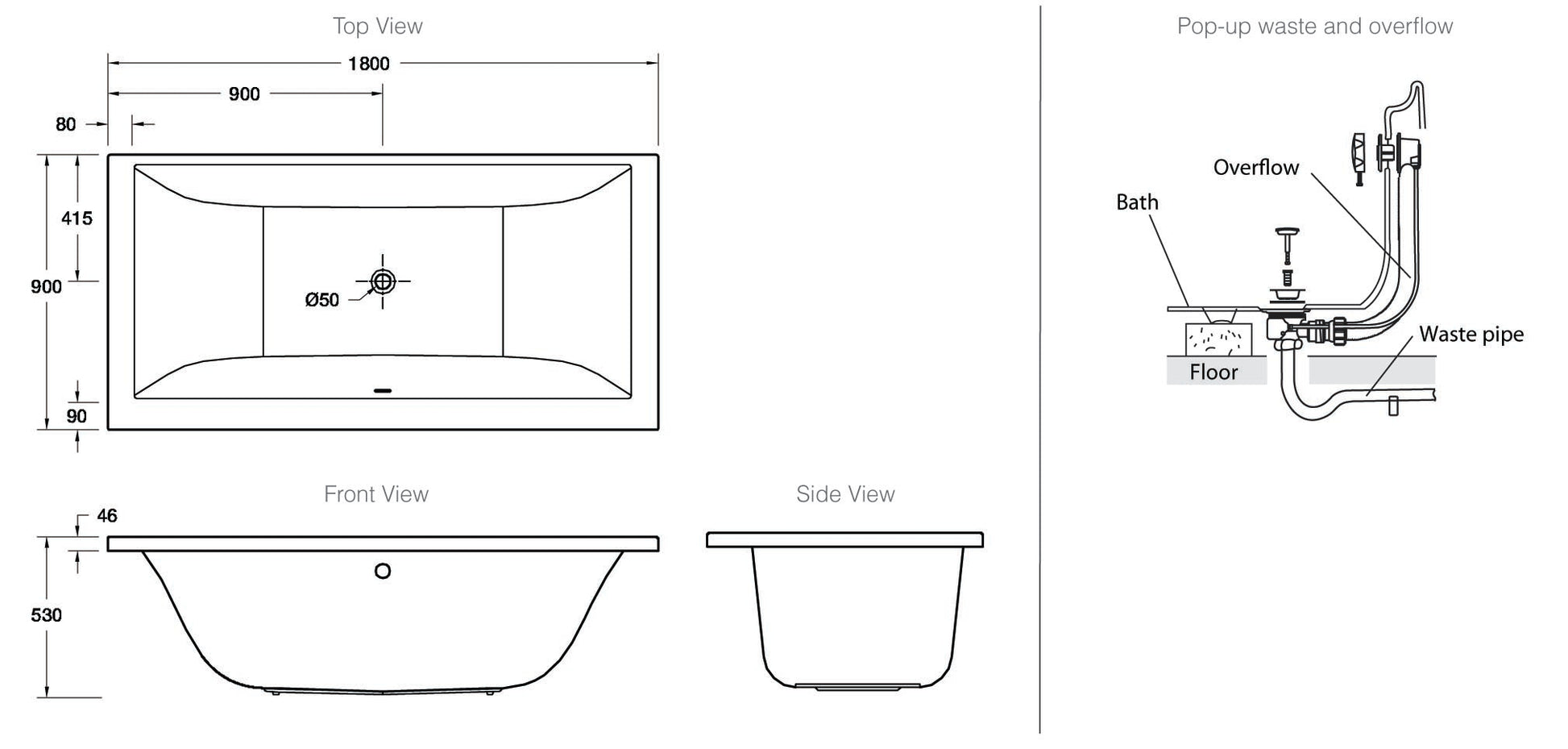 - Drop-in acrylic bath (fully reinforced)